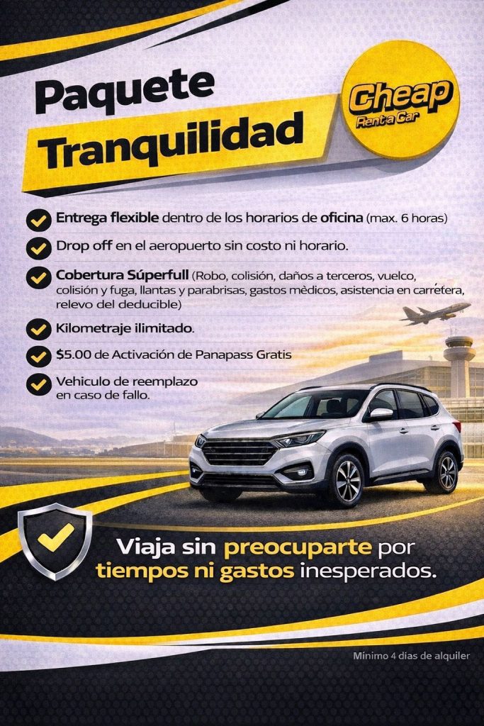 Viaja por Panamá con total confianza y sin preocupaciones. Nuestro paquete está diseñado para que disfrutes cada trayecto con respaldo completo.