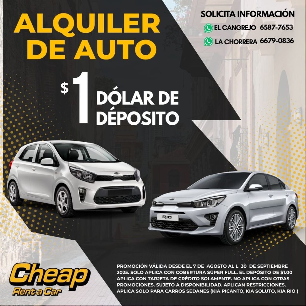 Aprovecha las mejores promociones de alquiler de autos en Panamá con Cheap Rent a Car. Ofertas especiales en vehículos económicos y SUV, disponibles en nuestras sucursales de El Cangrejo y La Chorrera. ¡Reserva ahora y conduce más por menos!”