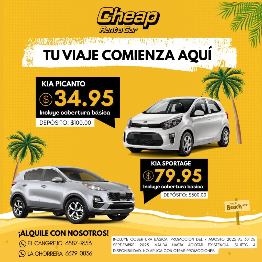 Aprovecha las mejores promociones de alquiler de autos en Panamá con Cheap Rent a Car. Ofertas especiales en vehículos económicos y SUV, disponibles en nuestras sucursales de El Cangrejo y La Chorrera. ¡Reserva ahora y conduce más por menos!”